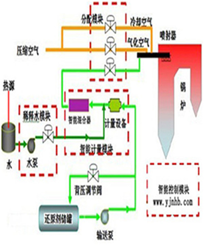 3).管路設(shè)置清晰,壓縮空氣、除鹽水、尿素溶液(或氨水)從左側(cè)進(jìn)入,調(diào)節(jié)好的壓縮空氣、尿素溶液(或氨水)從右側(cè)引出。